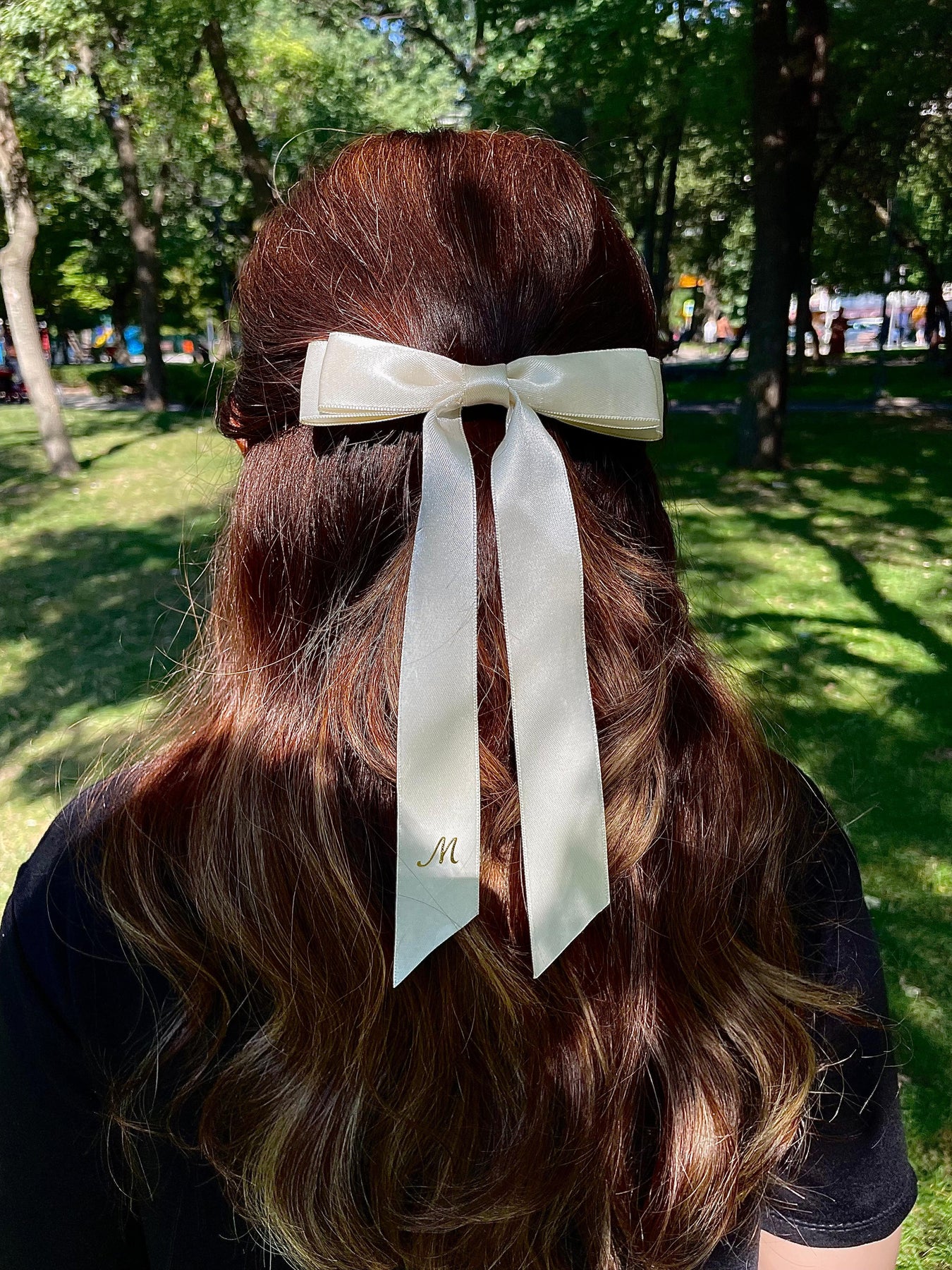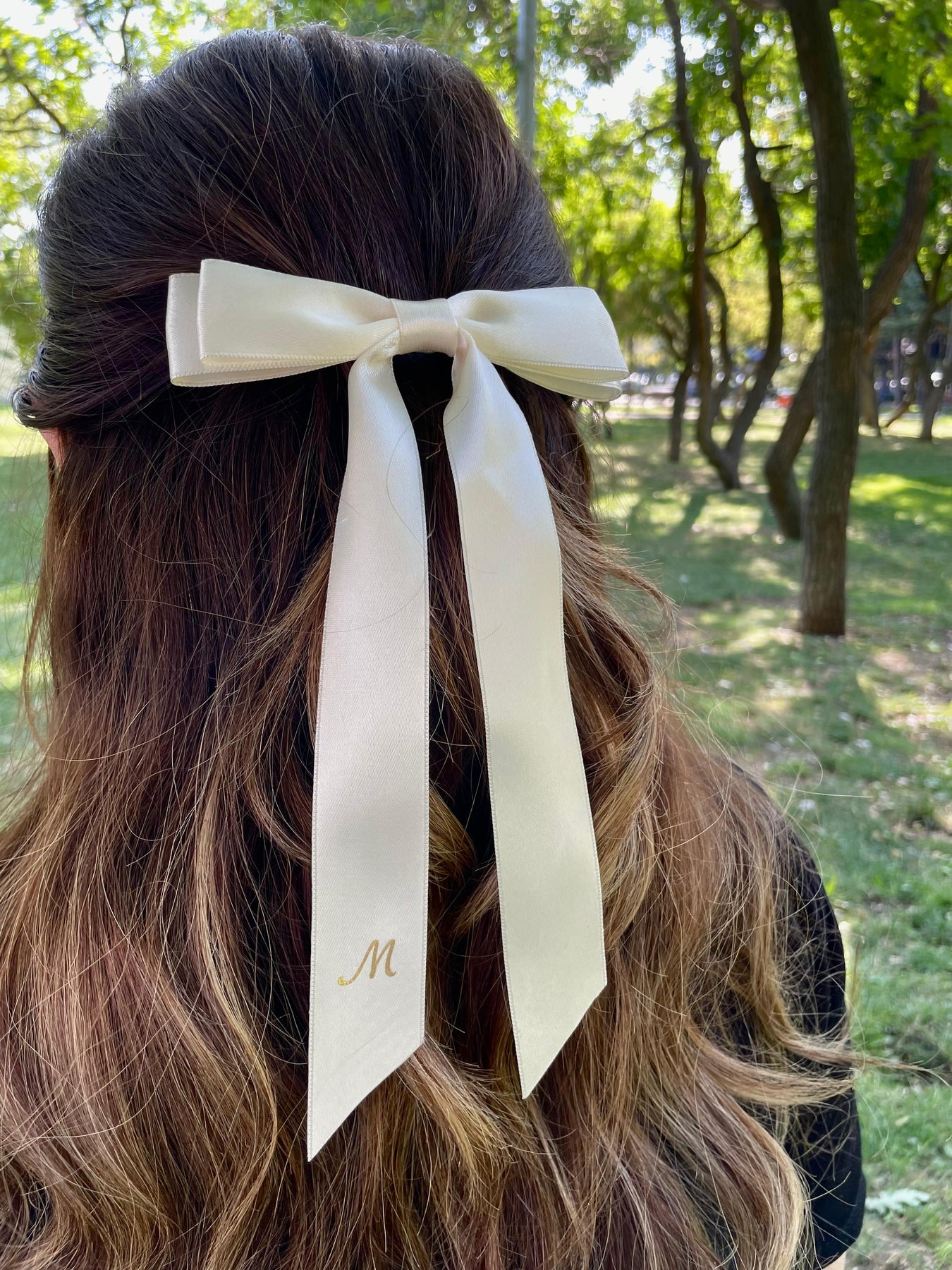 Kişiselleştirilebilir Krem Saten Fiyonk Saç Tokası