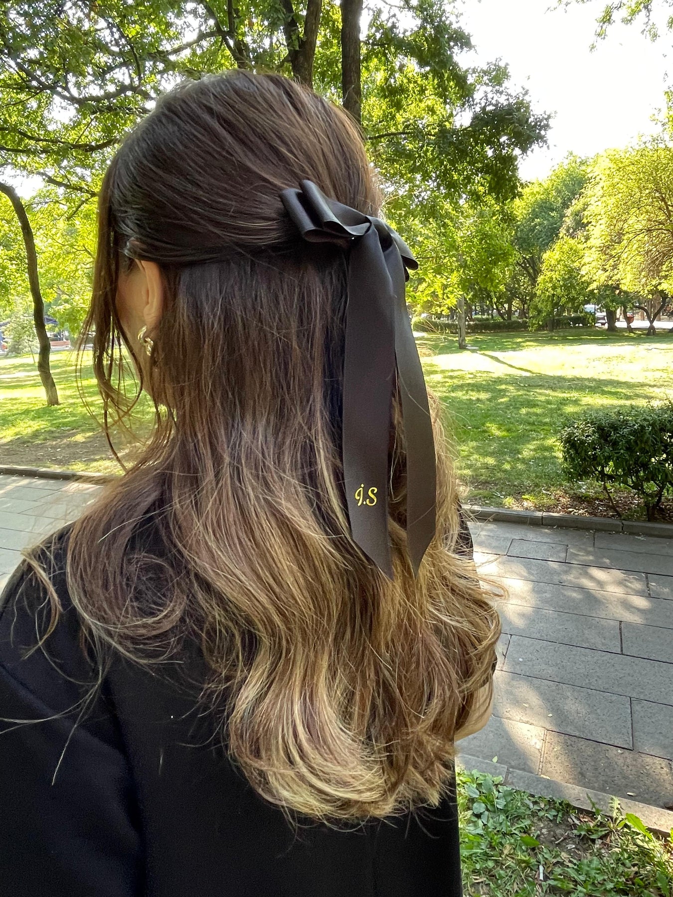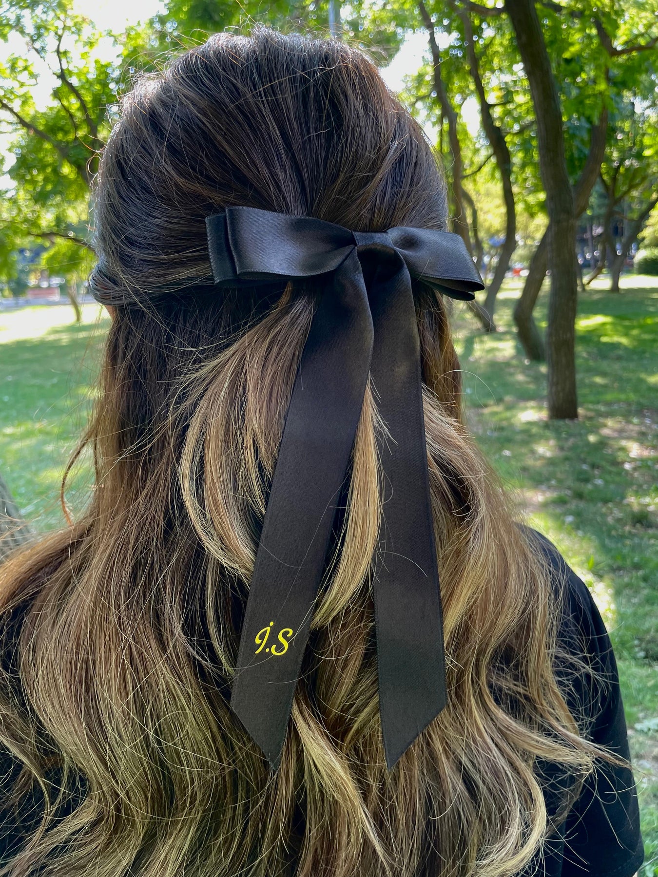 Kişiselleştirilebilir Siyah Saten Fiyonk Saç Tokası