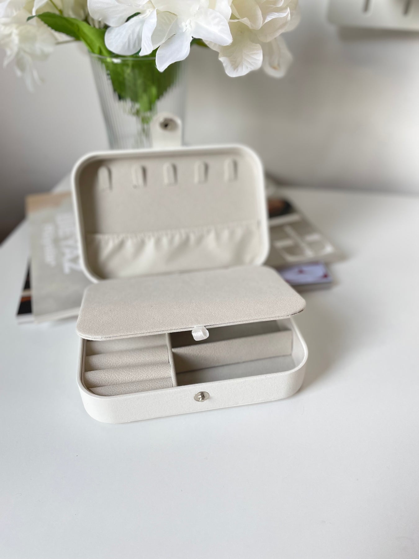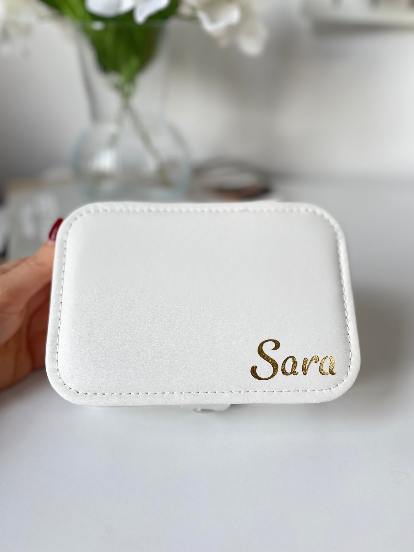 Kişiselleştirilmiş Deri Büyük Boy Üç Bölmeli Beyaz Takı Kutusu