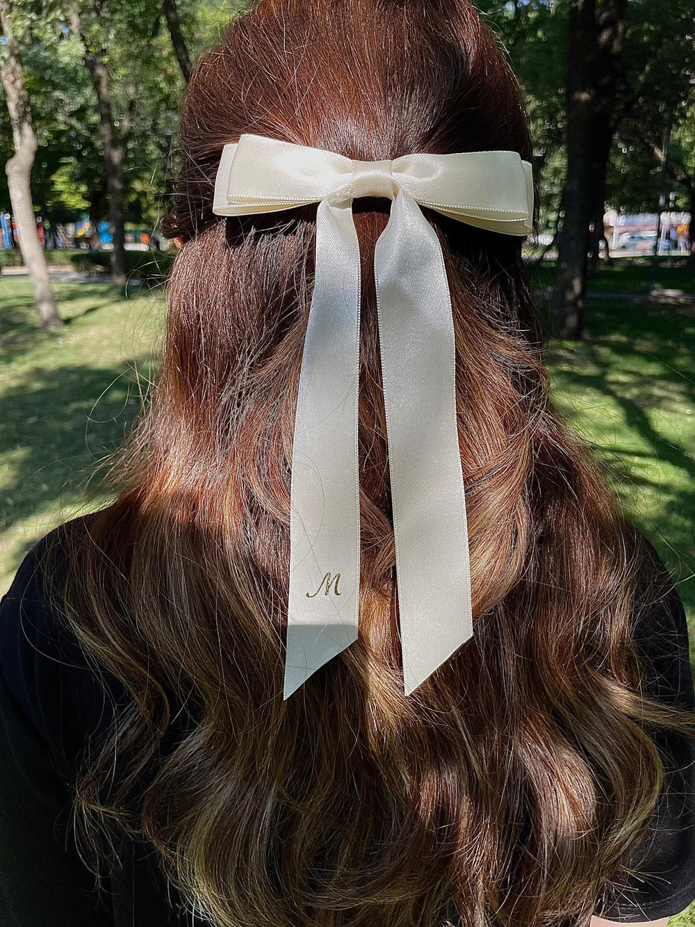 Kişiselleştirilebilir Krem Saten Fiyonk Saç Tokası