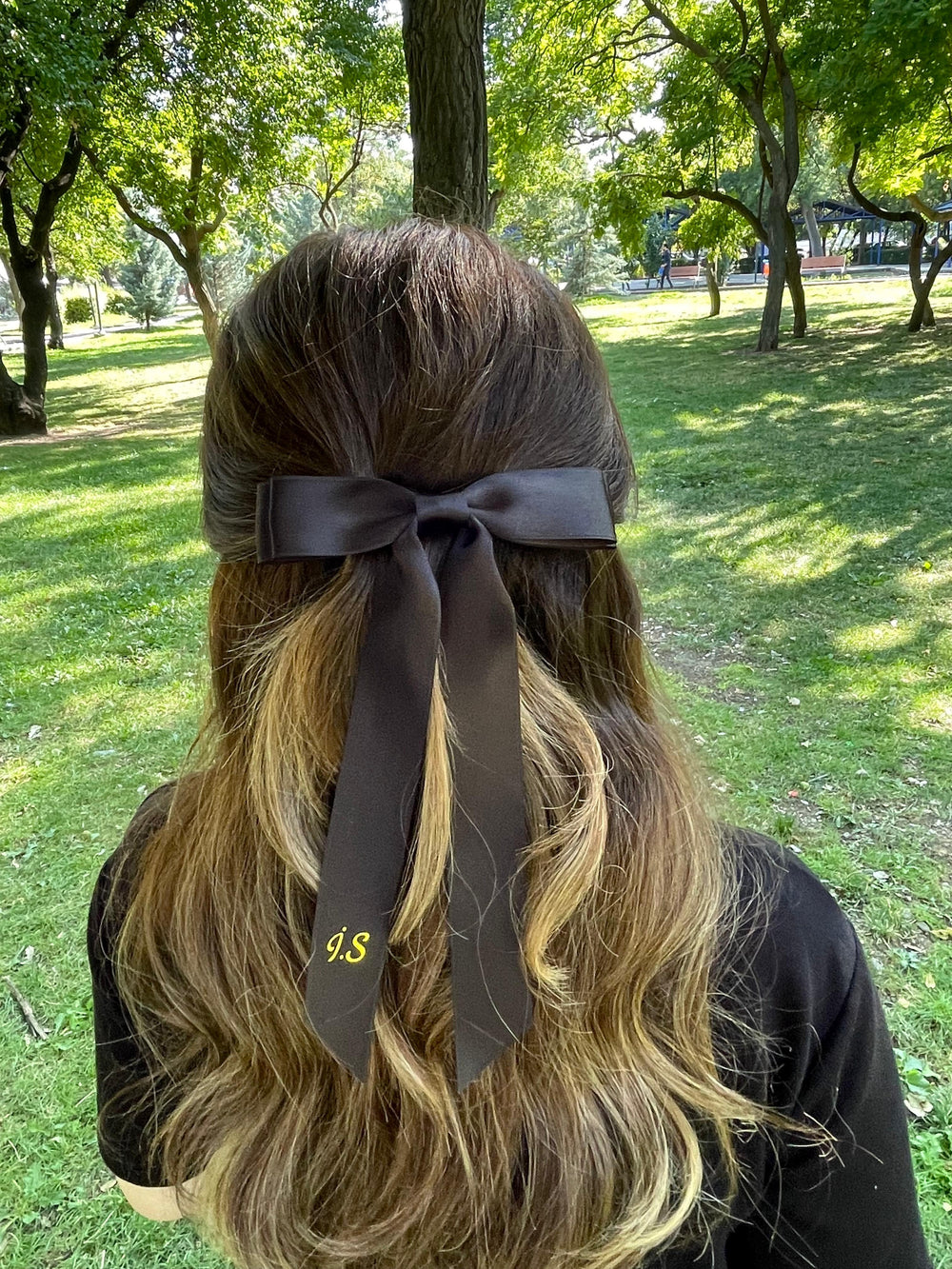 Kişiselleştirilebilir Siyah Saten Fiyonk Saç Tokası